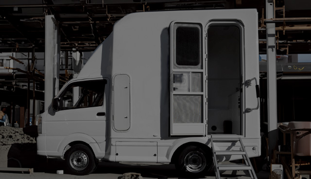 既成概念にとらわれない自走式水洗トイレカー。