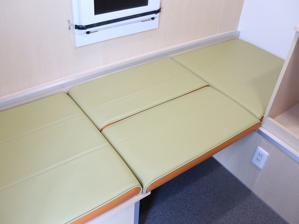 | 標準装備(マルチタイプ) | ・大便器 ・手洗い場 ・室内照明 ・ステップ ・換気扇 ・冷蔵庫 ・収納テーブル ・1,900mmベッド ・座椅子×2 |